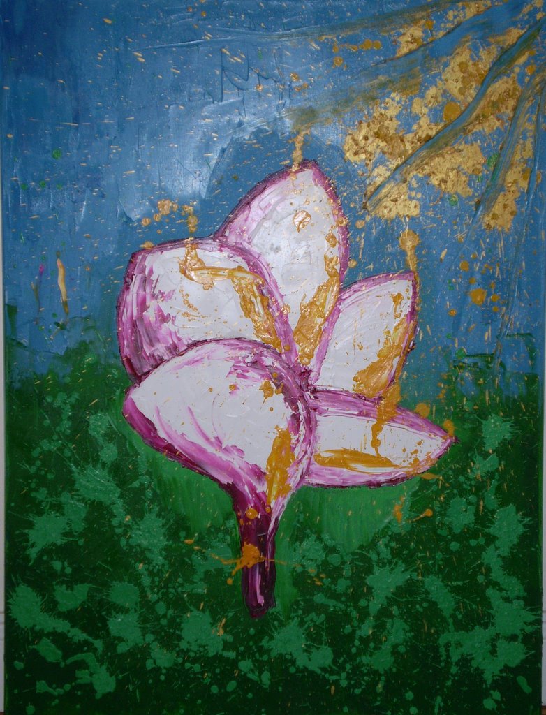 The Blooms IV (Hibiscus Sunshower) 76cm x 76cm (30″x 30″) Oil & acrylic paints on stretched canvas